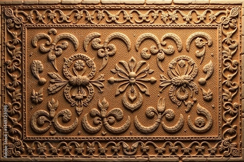 Intricate, repeating design etched into a clay surface, ancient style , complex, old