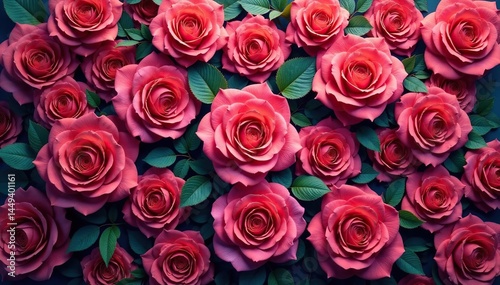 Intricate repeating rose pattern, vibrant hues, repetitive, floral design