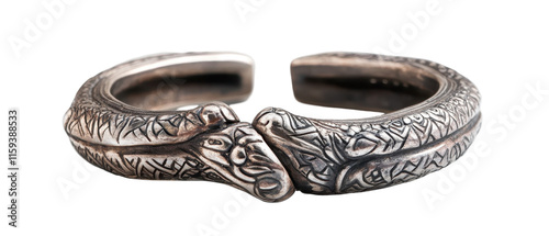 Intricate silver bracelet with unique design. transparent background