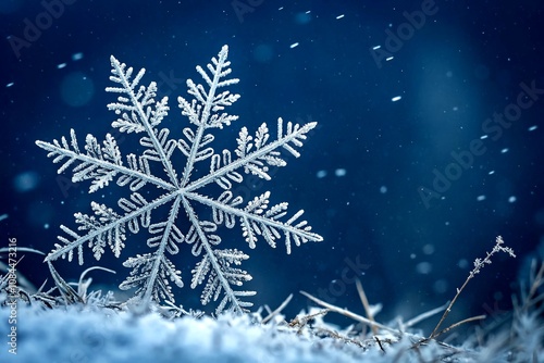 Intricate Snowflake Designs on a Dark Blue Background Showcasing the Unique Beauty and Delicate Artistry of Winter's Frozen Wonders for Stock Photo Collection
