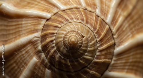 Intricate spiral seashell macro reveals stunning natural Fibonacci patterns and textures