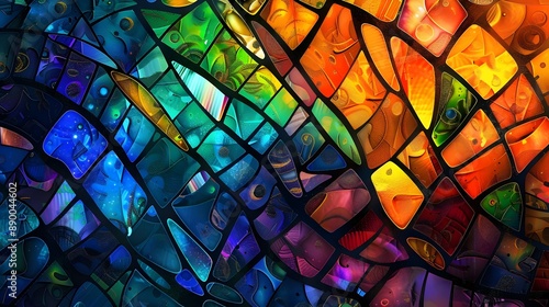 Intricate Stained Glass Patterns with Radiant Sunburst and Vibrant Mosaic Harmony Abstract Background