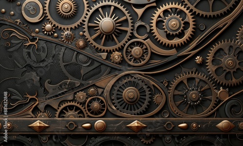 Intricate Steampunk Gears Mechanism with Vintage Aesthetic on Black Background
