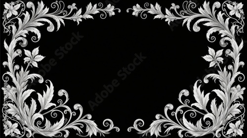 intricate swirling floral border design with delicate leaves and vines on white backdrop | invitation, wedding, background, embellishment, stationary theme