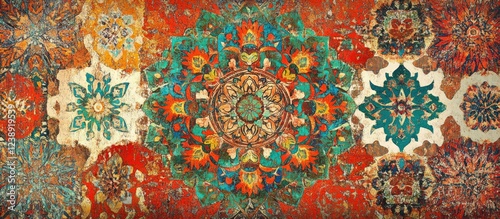 Intricate Vintage Persian Rug Pattern with Vibrant Colors and Geometric Motifs