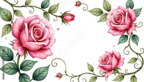 Intricate watercolor roses, swirling vines, delicate leaves, delicate, yellow, texture