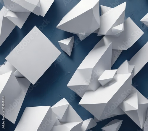 Intricate white and grey geometric shapes on a blue abstract background, elegant, modern, art, background