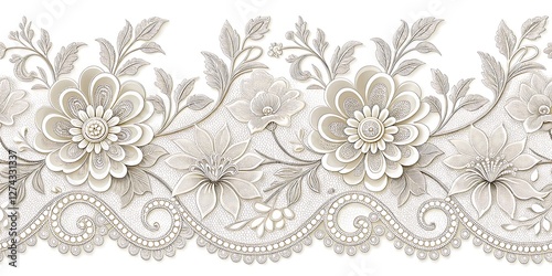 intricate white floral lace design delicate flowers seamless pattern
