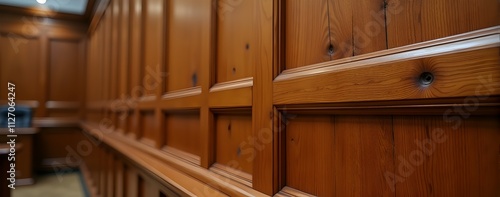Intricate wood paneling, rich brown tones, detailed craftsmanship, showcasing the beauty of natural wood grain. A luxurious, timeless design.