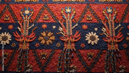 Intricate woven fabric with a distinct recurring motif , retro, cloth