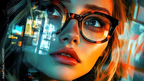 Intrigued futuristic woman with glasses