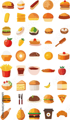 Introducing a unique set of 40 colorful and stylish food and drink icons, perfect for design projects, apps, websites, restaurant menus or marketing materials