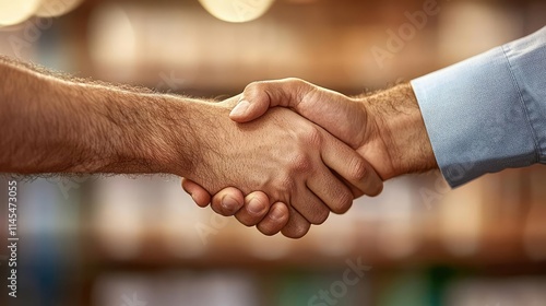 Inventory management idea. Two hands engaging in a firm handshake symbolizing partnership and agreement.