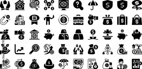 Invest Icon Set Isolated Silhouette Solid Icons With Business, Coin, Icon, Investment, Money, Finance, Bank Infographic Simple Vector Illustration