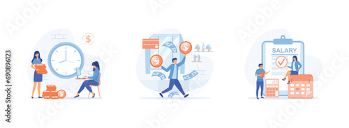 Invest Money. Salary payment. Annual bonus. Salary payment 2 set flat vector modern illustration