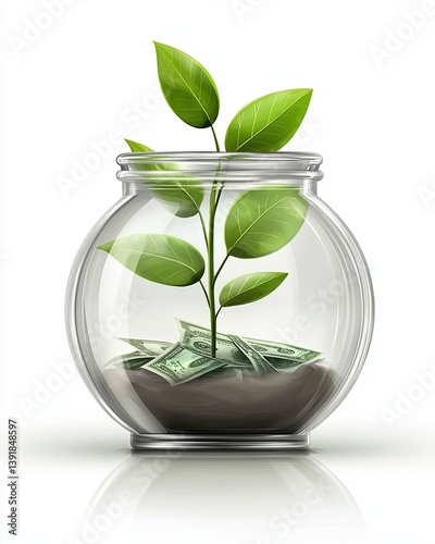 Investment Concept with Plant and Money Jar Isolated on White background.financial growth