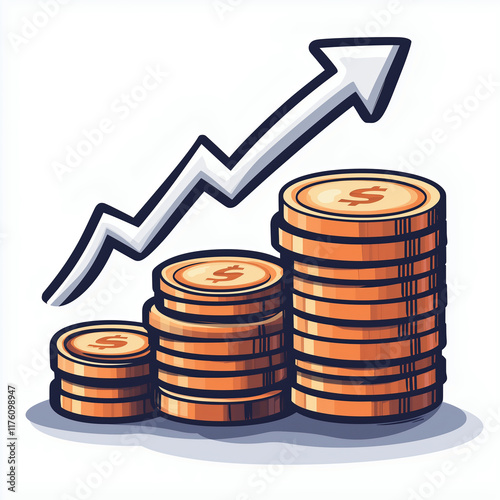 Investment Growth and Wealth: Stacked Coins with Arrow Chart Illustrating Economic Success and Financial Planning Strategies