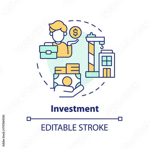 Investment multi color concept icon. Fund management, capital gain. Stock market, investor business. Round shape line illustration. Abstract idea. Graphic design. Easy to use in brochure, booklet