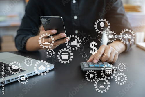 Investors have to calculate investment cost calculator and hold a mobile phone in hand.
