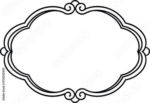 invitation text inside an ornate circular frame with decorative elements and a small silhouette figure near text
