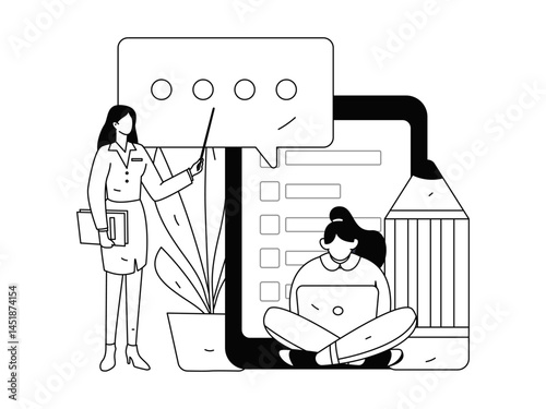 Invite friends to conduct questionnaire flat vector concept operation hand drawn illustration