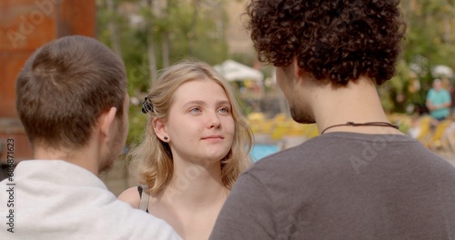 involve consensually and openly loving and connecting with multiple partners simultaneously. Girl and two guys. Romantic relationships among three individuals polyamory