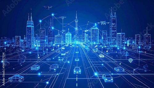 IoT Smart City Blueprint with Neon Grid