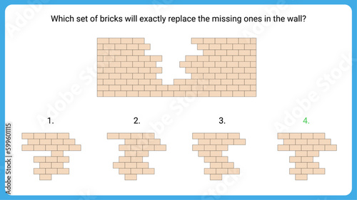 IQ test question with one main object a wall from where bricks are missing and four sets of building bricks at the bottom as given options. Option 4 is the correct answer.