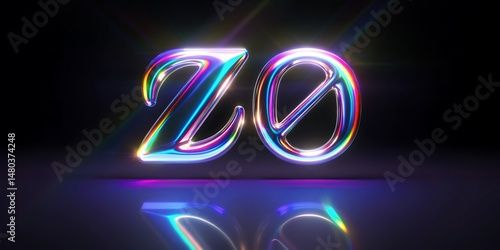 Iridescent Chrome Letters Z and O on Dark Background with Reflections