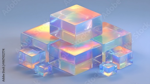 Iridescent Cubes Pastel Geometry on Blue.