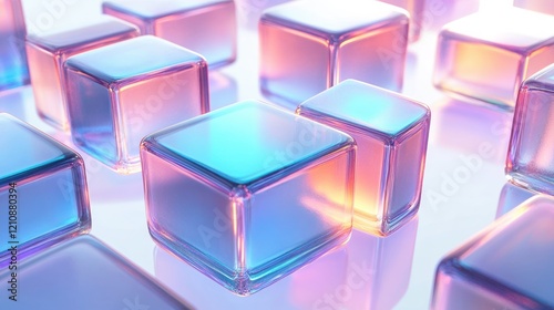 Iridescent Geometric Shapes Floating in Minimalist Space Abstract Design