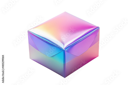 Iridescent gift box prismatic cube shape vibrant holographic colors stylish packaging design modern and trendy colorful