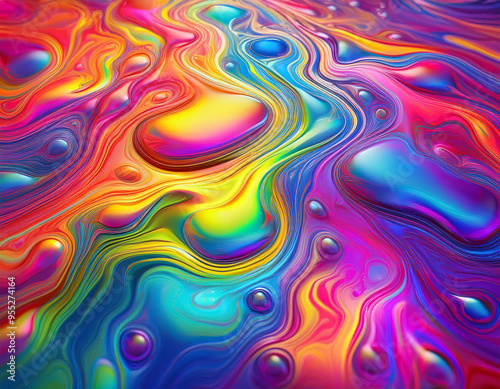 Iridescent Oil Slick Abstract Shiny Fluid Texture with Colorful Reflective Liquid Background Design
