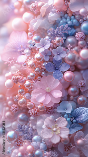 Iridescent pearls in soft pastel tones of pink, lavender,