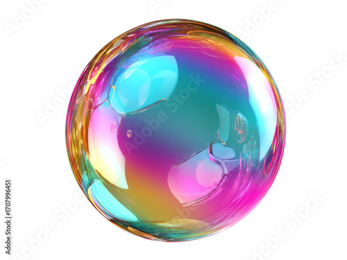 Iridescent soap bubble abstract sphere background, Isolated On White Background, Png Transparent
