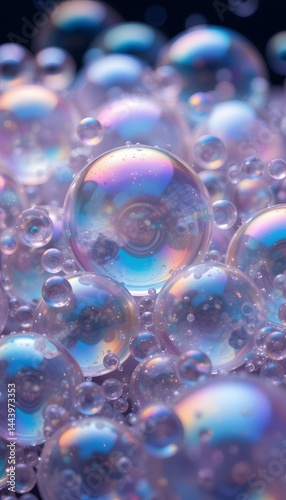 Iridescent Soap Bubbles Abstract. Spherical Shapes Shimmer Showing Rainbow Colors. These Beautiful Fragile Forms Float Effortlessly Creating Captivating Visual Art. Capturing A Sense Of Wonder.