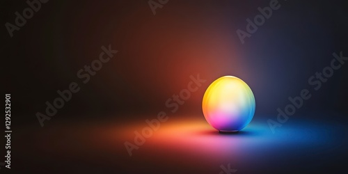 Iridescent Sphere Glowing with Rainbow Light in Dark Setting