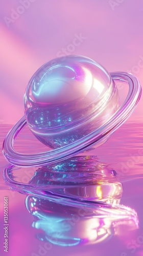Iridescent Sphere With Ring Abstract Art