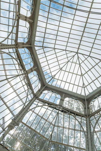 Iron and glass house construction. Large roof made of Iron and glass materials