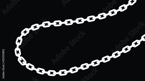 iron chain set from straight to curved. vector illustration isolated on black background.