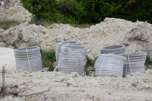 Iron concrete rings. Construction of sewerage system.