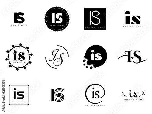 IS logo company template. Letter i and s logotype. Set different classic serif lettering and modern bold text with design elements. Initial font typography.