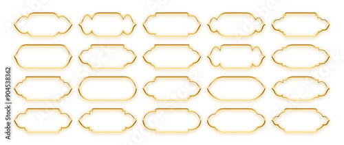 Islamic frames, oriental style objects. Arabic shapes, windows and arches. Traditional ornamental banner, frame. Muslim holidays, Ramadan Kareem. Modern eastern architecture. Vector illustration