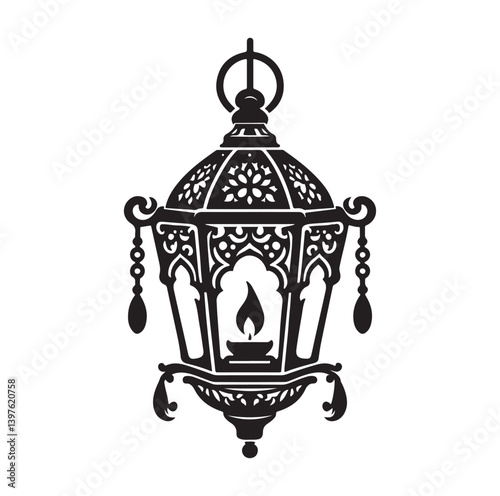 Islamic hanging lantern element silhouette vector.