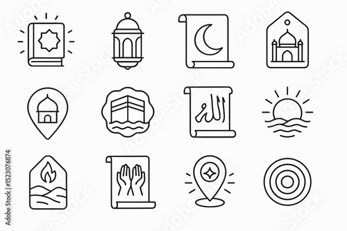 Islamic icons collection featuring mosque, lantern, quran, and crescent moon