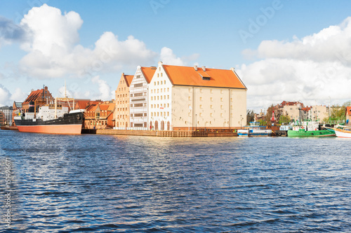 island Olowianka and ship harbour in old town of Gdansk, Poland