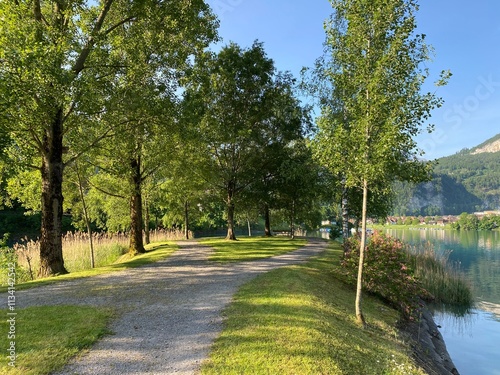 Islet Lungern from a bird's eye view at Lungern Lake or Lungerensee - Canton of Obwalden, Switzerland (Inseli Lungern aus der Vogelperspektive am Lungernsee - Kanton Obwald, Schweiz)