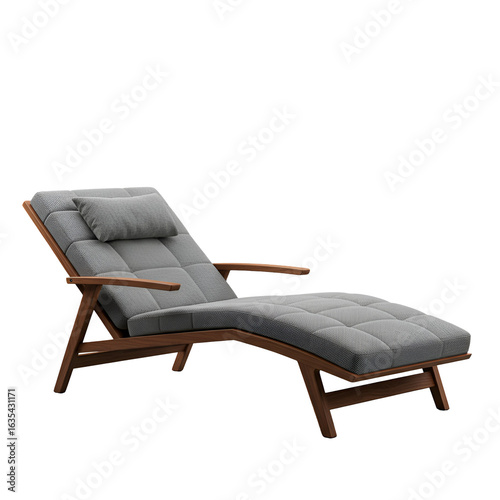 Isolated 3D Render Of A Modern Wooden Lounge Chair With Gray Cushions
