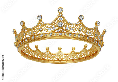 Isolated 3D Render of Golden Crown with Gems on Transparent Background
