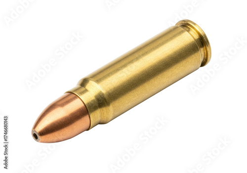 Isolated ammunition cartridge, metallic casing with copper bullet, defense and firepower